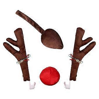 Car Christmas Reindeer Antlers & Nose Decoration Set Holiday Party Accessories