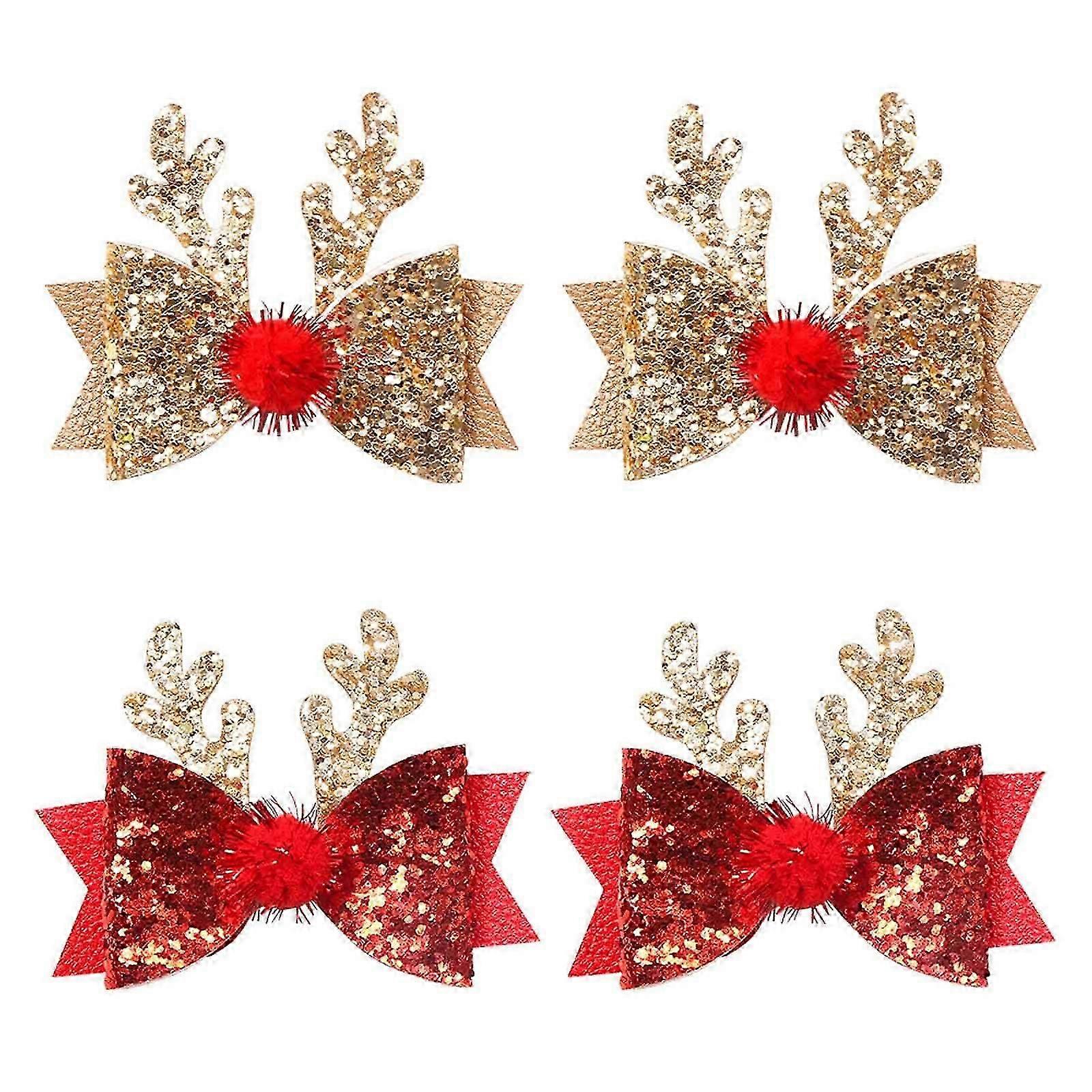 Christmas Hair Clips Glitter Antler Bow Hair Clips Christmas Bow Christmas Headwears For Girls