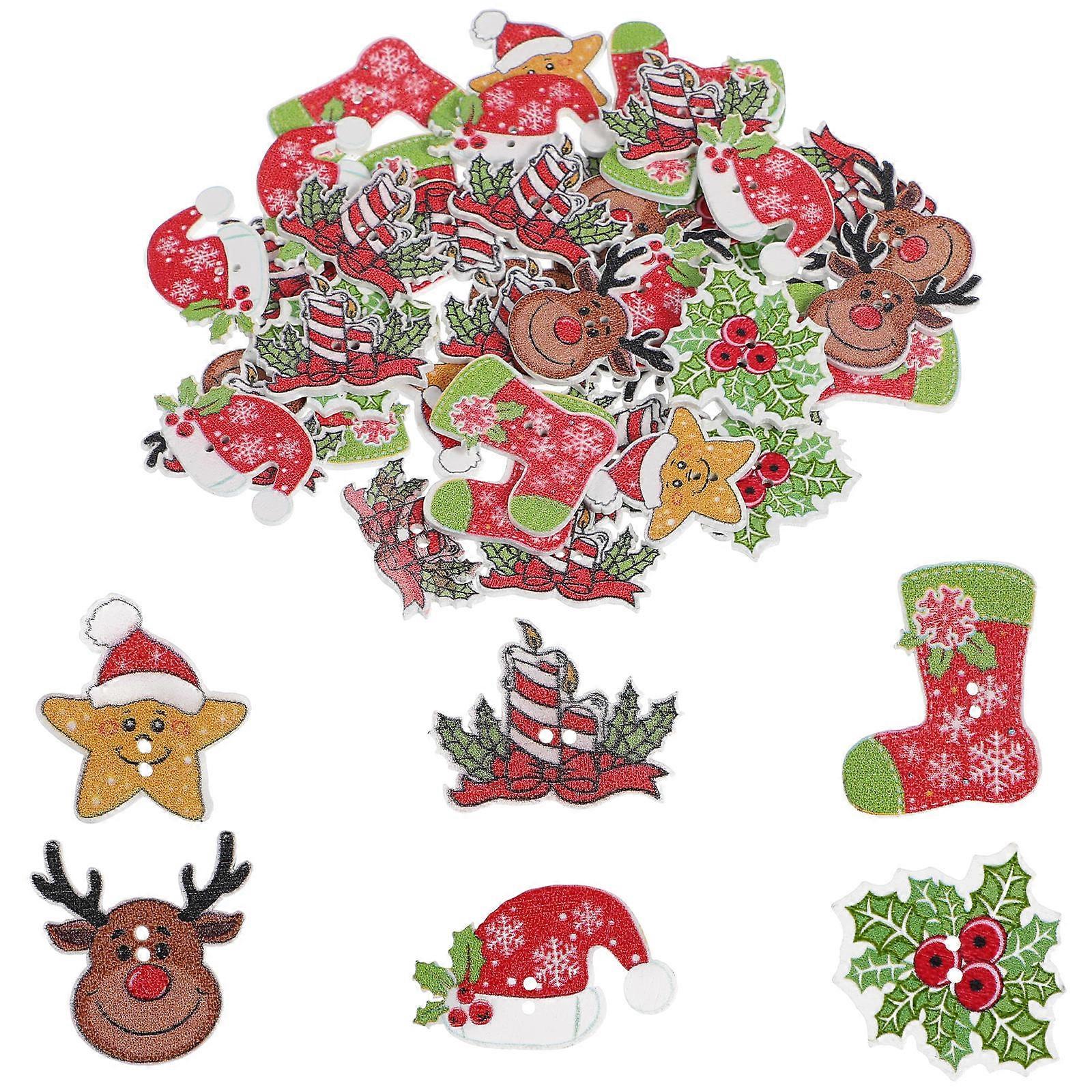 Xmas Buttons Diy Embellishment For Festival Occasions Handcraft Enthusiasts Mixed Pattern Assorted Color 50Pcs