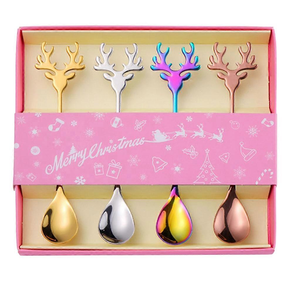Christmas Design Dessert Spoons For Family Gatherings Long Wapiti Handle Rust-proof Material 4Pcs