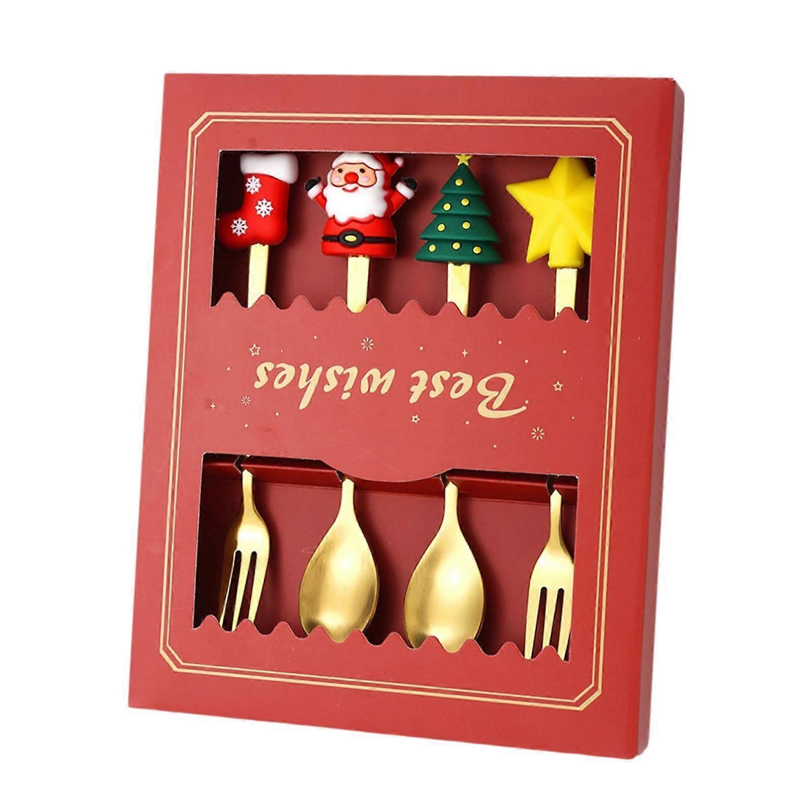 Christmas Spoons Forks Set Xmas Cutlery Kits for Holiday Christmas Daily Use Red Box