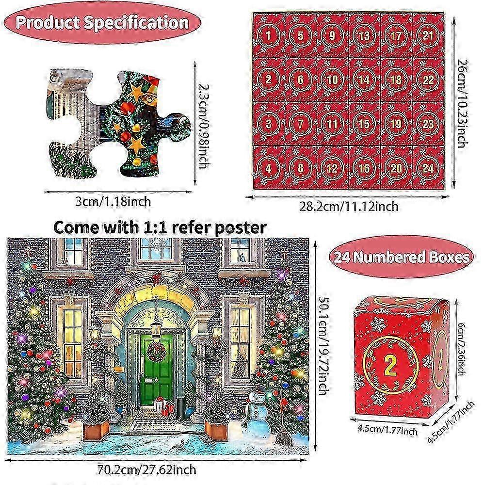 Advent Calendar 2023 Christmas Jigsaw Puzzles The Christmas Cottage Holiday Puzzles for Adults Kids Children 24 Parts Total 1008 Pieces Jigs