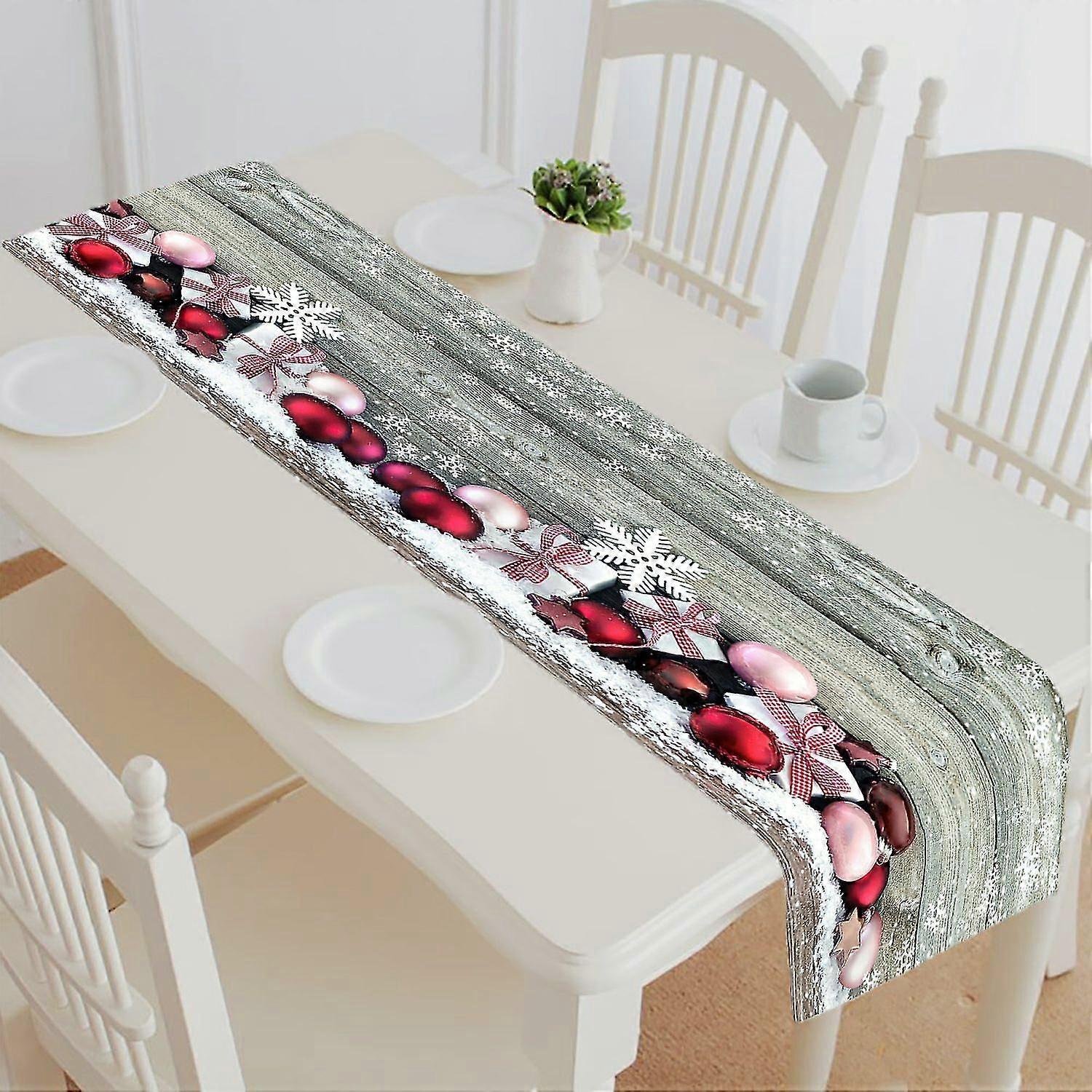 Christmas Colorful Baubles Gift Boxes Snow Table Runner Placemat Tablecl @BUGU