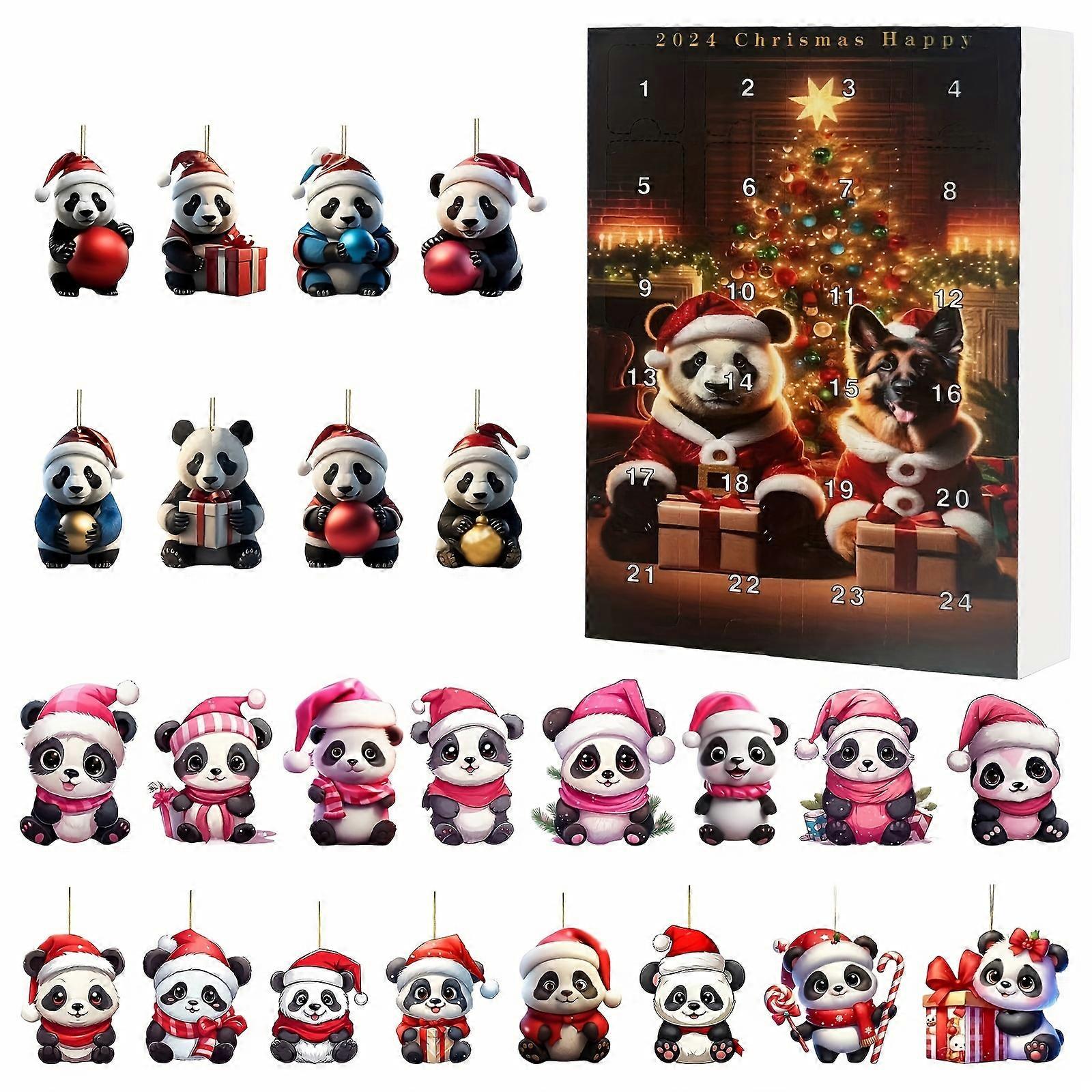 24-piece acrylic cartoon panda Christmas countdown ornaments, 24-day countdown blind box - Christmas gift