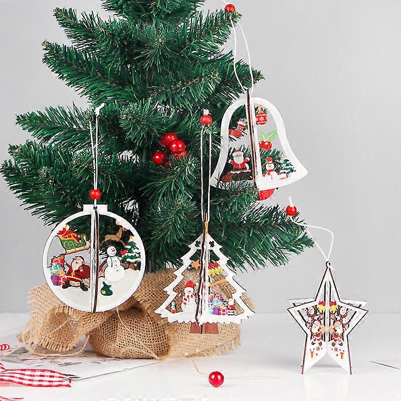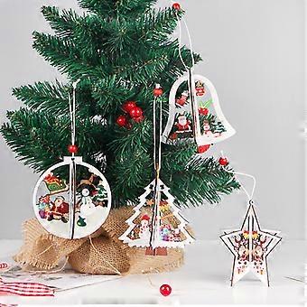 Christmas Decorations Wooden Hollow Three-Dimensional Snowflake Ornaments Christmas Tree Bells Pendant Gifts
