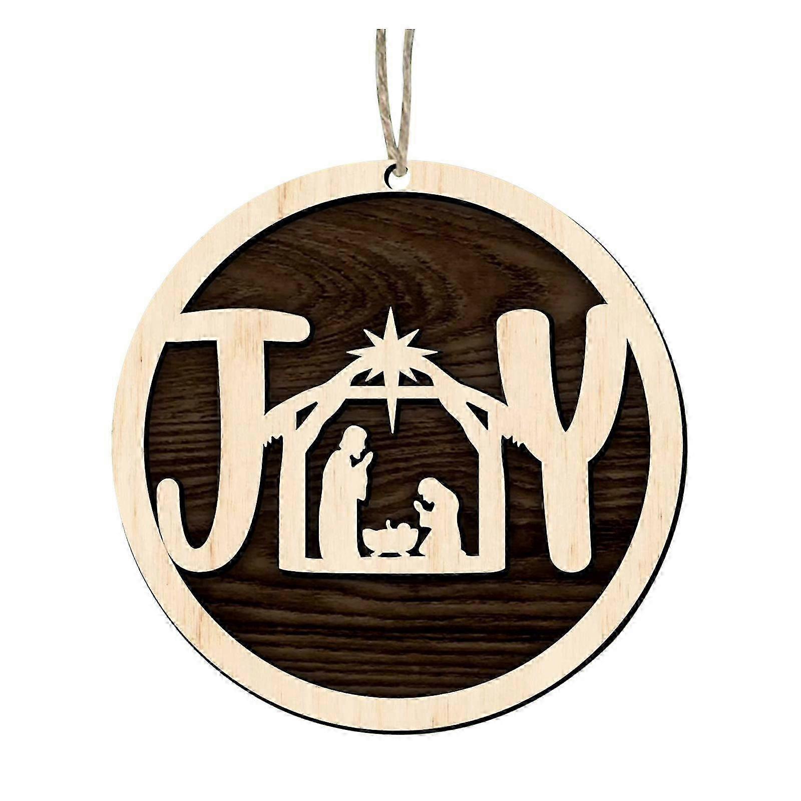 Christmas Nativity Scene Ornaments, Wood Hanging Christian Ornaments Wooden--Round