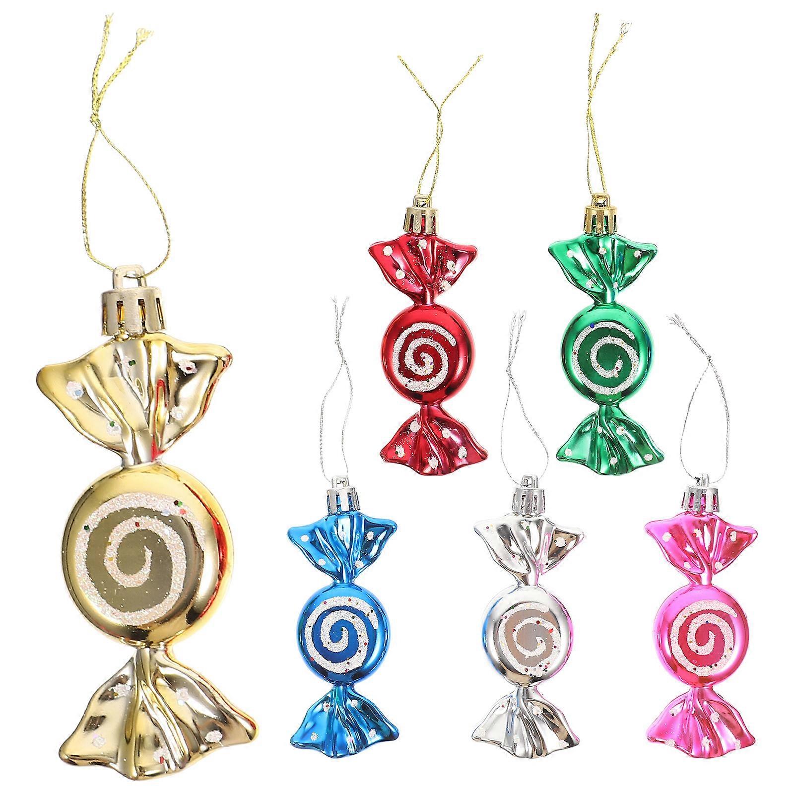 Christmas Ornaments 6Pcs Assorted Color Plastic Candy Decoration 8.5x3cm Easy To Use Hanging Decorations