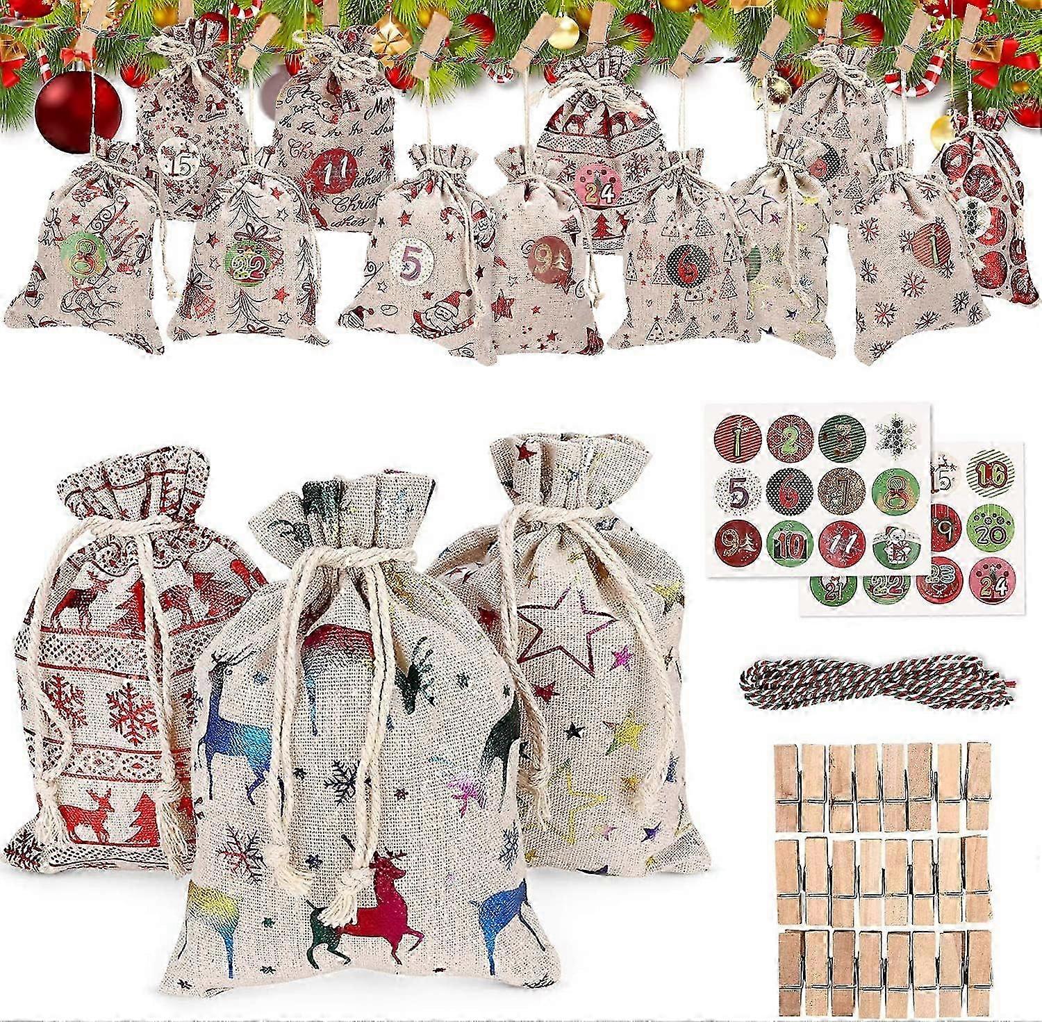 Christmas Burlap Gift Pouches, Suitable for Wall or Mantle Decoration, Linen Material Ensures Longevity for Annual Advent Calendar Use 2025