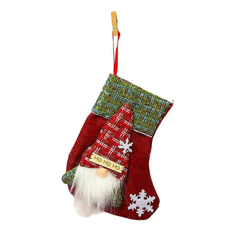 Machine-embroidered linen Christmas stockings, available in multiple colors and styles, small size, Christmas decorative hangers