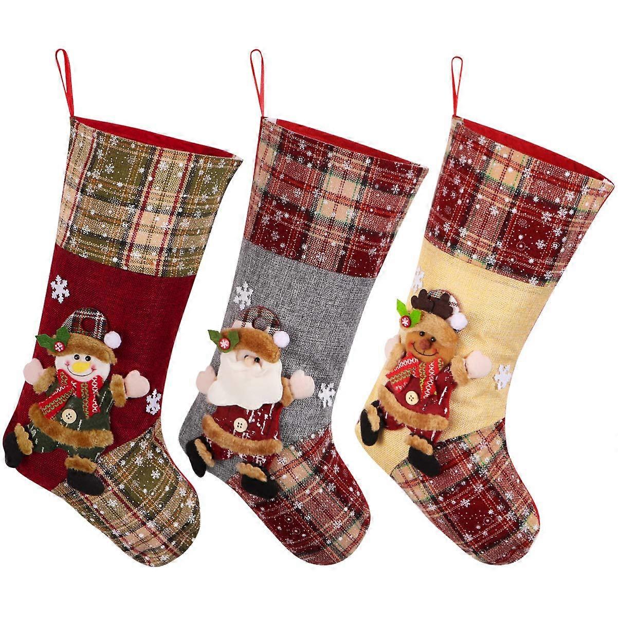 Christmas Stockings, Large Decorative Christmas Stockings, Reindeer, Snowman and Santa Claus Stockings 43 x 23 cm