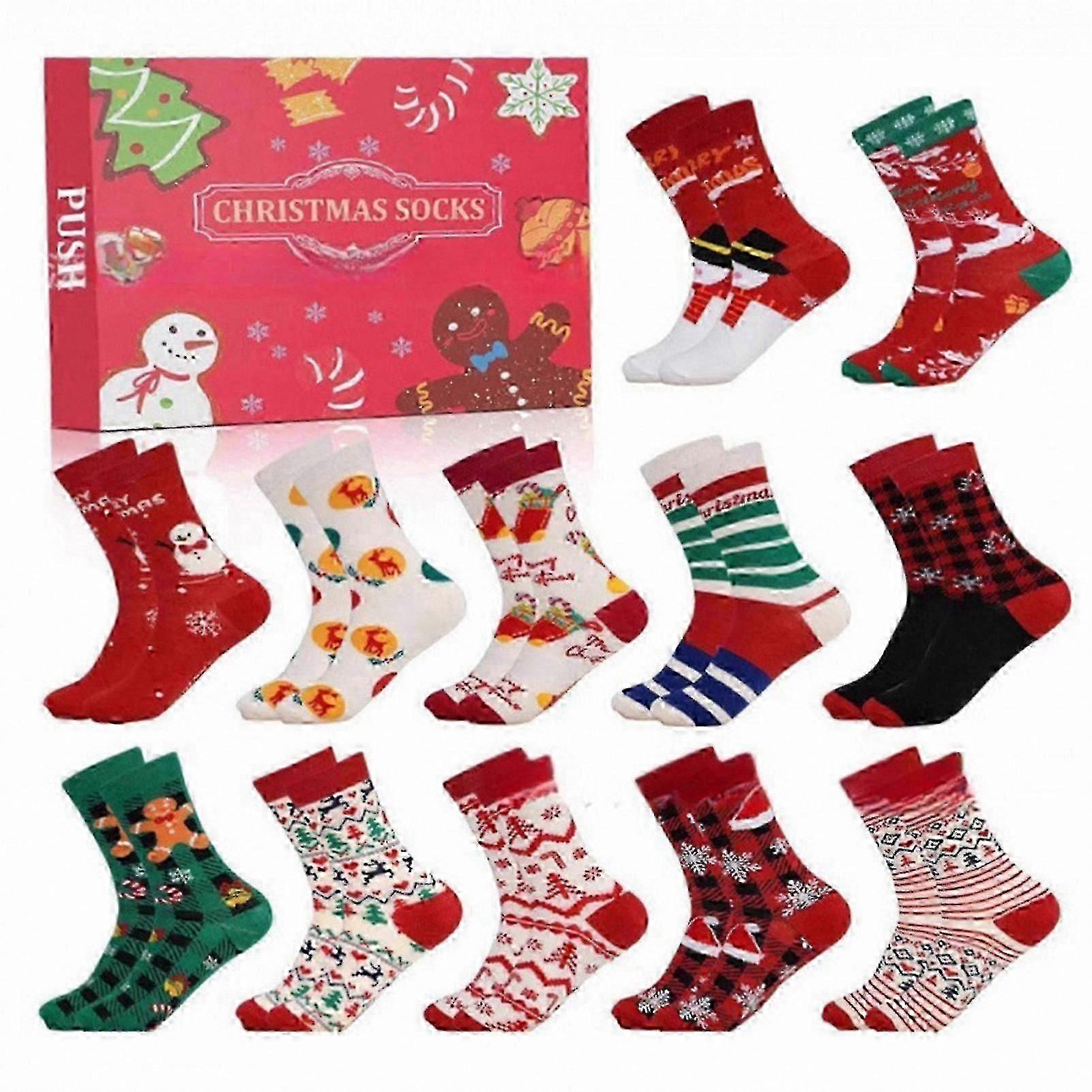 Christmas Socks Advent Calendar 24 Pairs Unisex Holiday Morning Surprises