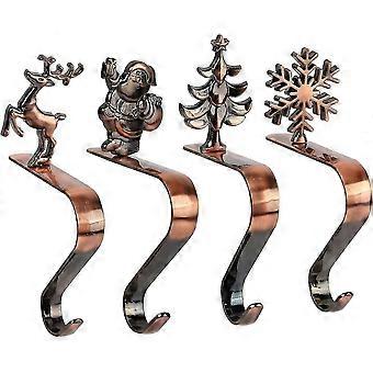 Χριστουγεννιάτικες κρεμάστρες για τζάκι, 4 τεμάχια, αντιολισθητικές, μεταλλικές χριστουγεννιάτικες θήκες για κάλτσες, κρεμαστά γάντζοι για κάλτσες, χριστουγεννιάτικες διακοσμήσεις, με δέντρο
