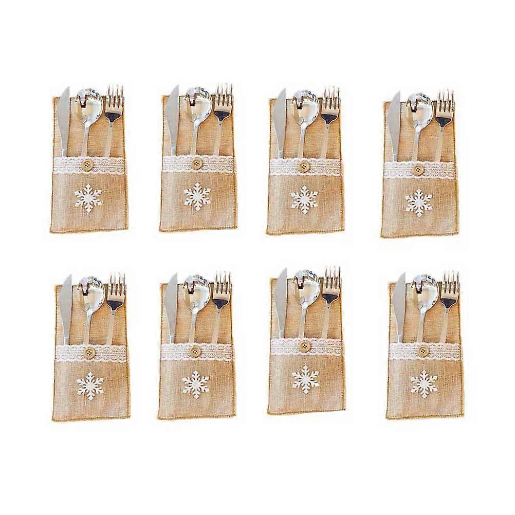 Christmas Cutlery Spoons Bags Linen Silverware Holders for 8Pcs Event Use