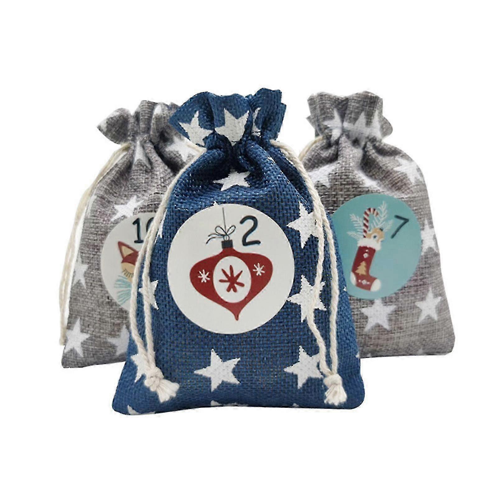 Christmas Countdown Calendar Drawstring Bags With Wooden Clips And Stickers Stocking Stuffers Gift For Kids