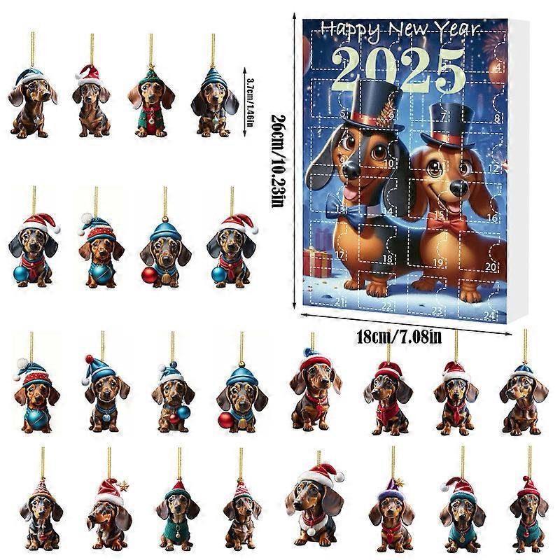 2025 Christmas Countdown Cute Dachshund Pet Pendant Home Decor Christmas Blind Box