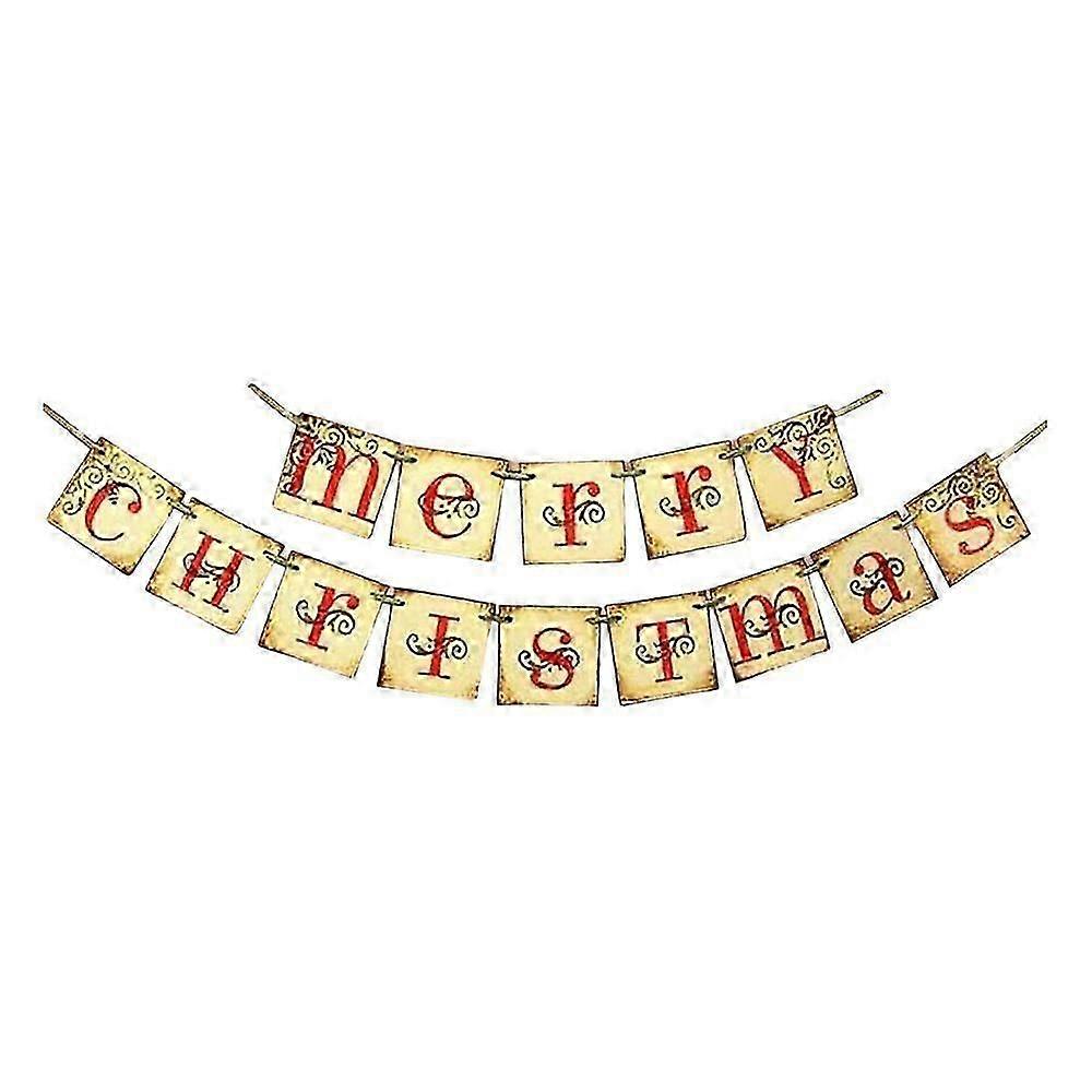 Christmas Bunting Garland Vintage Merry Christmas Banner Decoration Holiday Fireplace Mantel Hanging Ornament for Home Office Party Decor