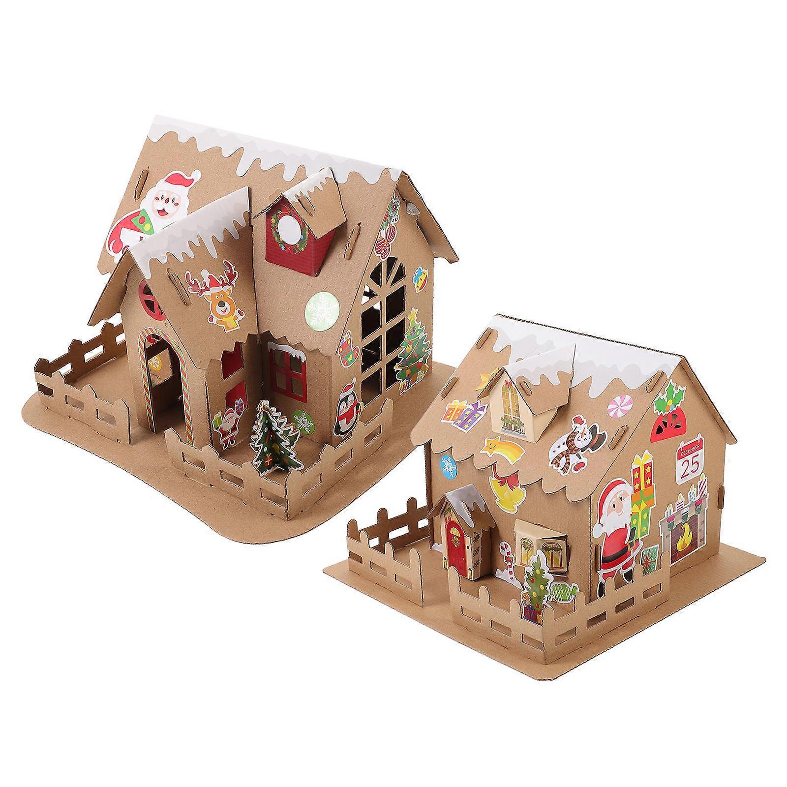 Christmas DIY House Creative Decoration for Kids 2Sets Cardboard Cottage