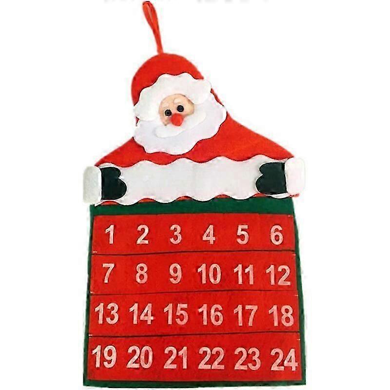 Advent calendar wall decoration for Christmas. Santa's Christmas Adventure Hanging Calendar. A fun way to help your children countdown to Christmas. This soft fabric Advent calendar is a fun family activity to count down the days until Santa Claus arrives. This cute fabric Christmas Advent calendar is a fun addition to your Christmas decorations that children and adults look forward to every year will be happy year after year. Celebrate the holidays and count down the days until Christmas with this festive Advent calendar. The color red. Material: non-woven fabrics. Size: 30 x 40 cm (L x W x H).