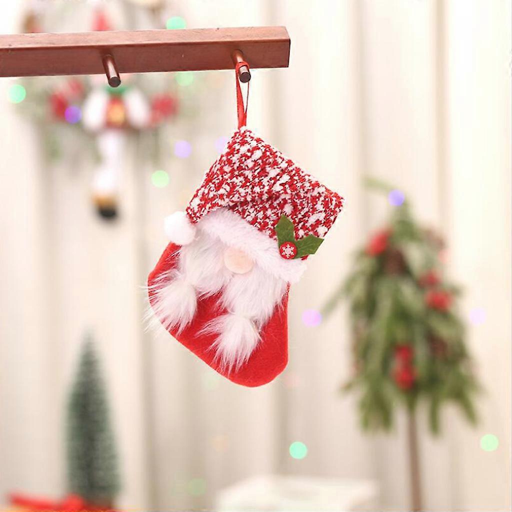 Christmas Stocking Plush Gnome Santa Xmas Hanging Stockings Gift Candy Bag for Fireplace Tree Ornament Family Holiday Party Decor Red