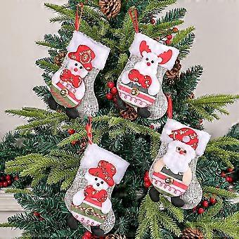 Christmas Stocking Plush Santa Snowman Bear Reindeer Xmas Stocking Pendant Holiday Hanging Decoration for Christmas Tree Home Party Decor