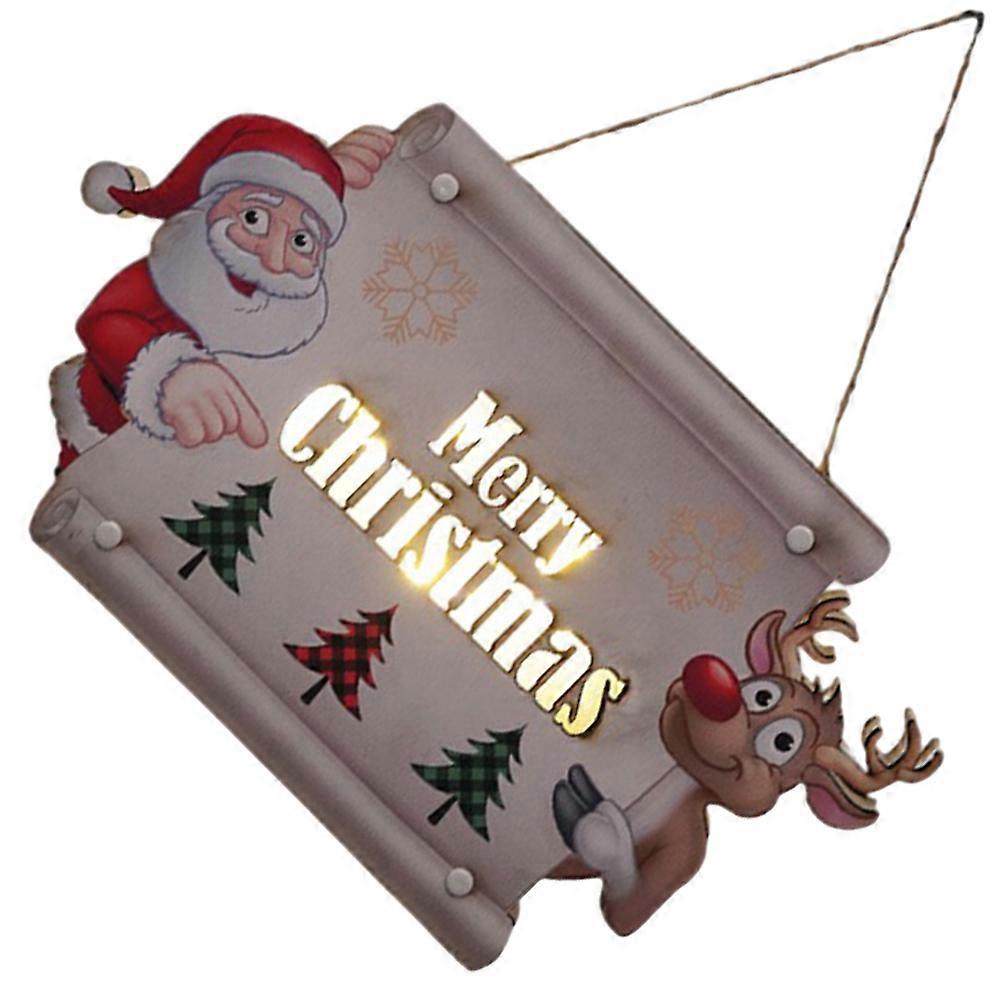 This hanging sign with light is a good Christmas decoration, which will bring you a different feeling and good mood. It is also a great Xmas photography prop for you, use it to take some interesting pictures. In addition, if you send the Xmas hanging decor to your friends as a gift, they will be very happy. Features -Color:As shown -Material:Wood -Size:30.00X17.50X2.40cm/11.79X6.88X0.94in - Power supply: 2 x AAA batteries(Not included). -Interesting and unique, can bring more fun, make your room full of Christmas atmosphere. -This is the hanging lighted sign, providing a warm atmosphere, specially designed for Christmas. -Make your home more unique and different. Give you a good mood and new feeling. -You can directly suspend it on doors, courtyards, walls, trees to decorate your home, hotel, bar. -You can use it as a photography prop to take some memorable with your families and friends. Package list: 4 x Christmas Door Sign