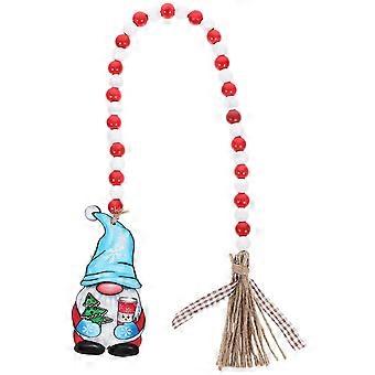 Christmas Wooden Bead Pendant Santa Claus Wood Bead Hanging Decor with Tassel for Cars (Antler Hat)