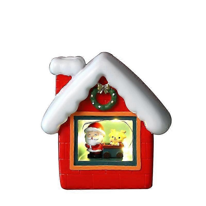 Christmas Resin Santa With House Light Ornament Star Lamp With Battery Powered For Holiday Party Decoration