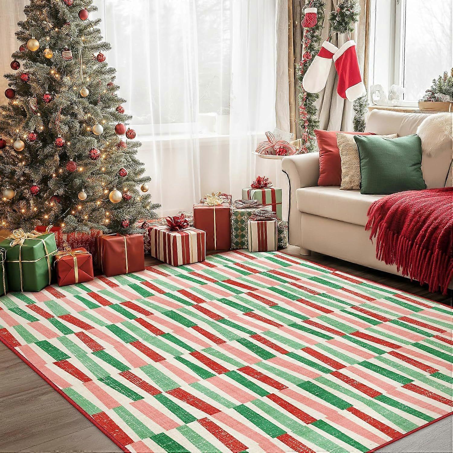 Christmas Series Rug Large Area Living Room Bedroom Easy Care Decorative Carpet Crystal Fleece Non-Slip Backing