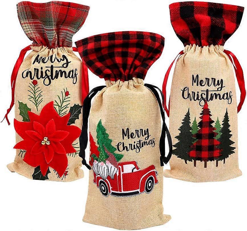 Christmas wine bag, 36x15cm bottle wine gift bag, with drawstring, novel Christmas tree Santa Claus design wine glass