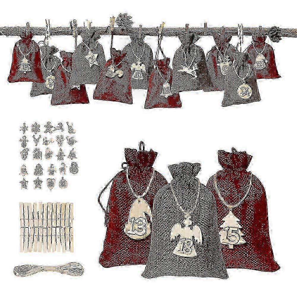 Christmas calendar counting bag jute canvas with wooden tag New Arrival