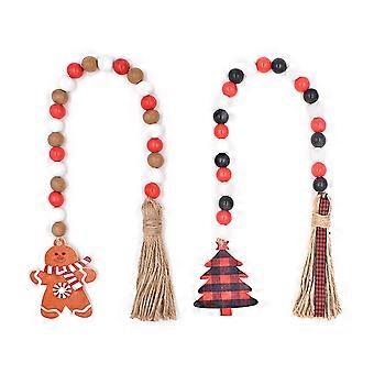 Χριστουγεννιάτικη φούντα Γιρλάντα Χάντρες προσευχής Αγροικία Ρουστίκ Φυσική χάντρα Κορδόνι Ξύλινη χάντρα Κορδόνι Χριστουγεννιάτικο μενταγιόν