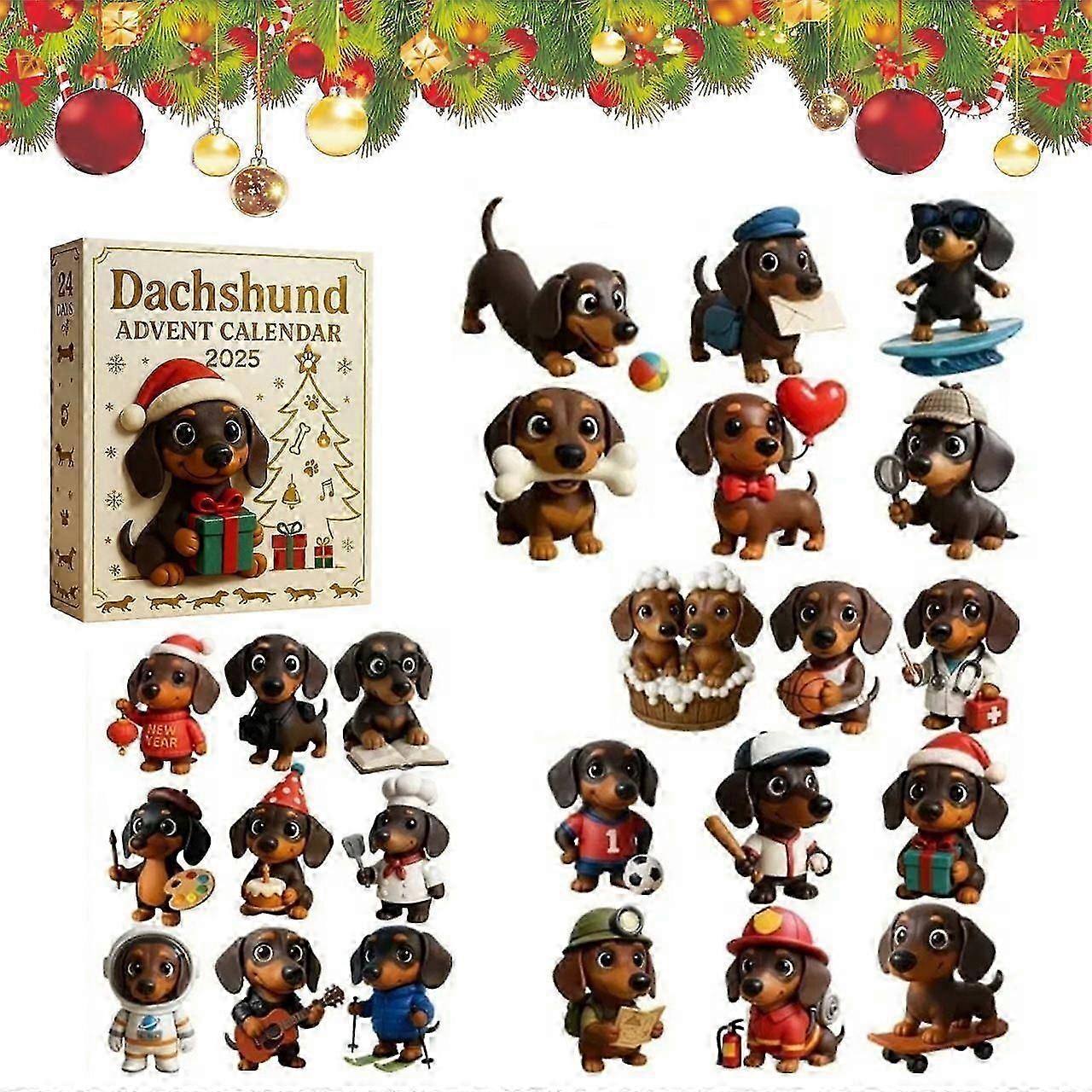 Dachshund Christmas Advent - Collectible Cute 2D Acrylic Christmas Advent,Dachshund Figurines Bag Charm Countdown - for Kids Adults Family Friends Lov