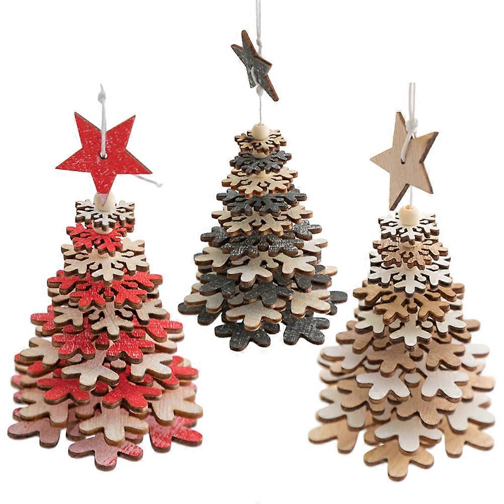 Christmas Tree Pendant Wooden Three-Dimensional Hanging Decoration for Home Decor Random Color 3Pcs