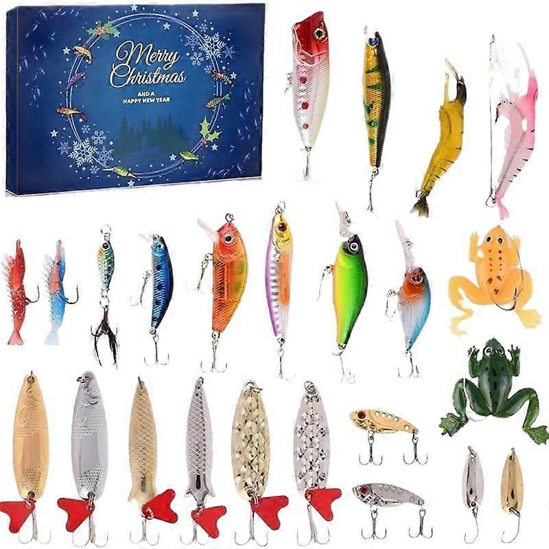Diverse Lure Collection: Explore a wide variety of fishing lures with our advent calendar. You'll find a thoughtfully curated assortment including 6 topwater lures, 2 submerged lures, 6 soft lures, and 10 spoons. Each lure type is neatly distributed across 24 compartments, providing an exciting journey through the fishing season Tailored for Every Fishing Scenario: With an array of lure types such as Popper, Pencil, Minnow, Crankbait, VIB, Frog Spoon, and Shrimp Lures, our fishing advent calendar equips you for success in any fishing condition. No matter the environment, our diverse set ensures you have the perfect tool to entice your catch Uncompromising Quality: Fish with confidence knowing that our lures are crafted from high-quality materials. Equipped with super sharp hooks, these lures are designed to withstand the toughest battles. Their lifelike design, 3D eyes, and ultra-realistic fish patterns further enhance their appeal, fooling even the most cautious fish Versatile Freshwater and Saltwater Performance: Whether you're angling in freshwater lakes or testing your skills in saltwater environments, our fishing lures are up to the task. Specifically designed for trout and bass fishing, our lures promise exceptional performance. It's the ultimate gift for anglers of all skill levels, from beginners to experienced enthusiasts Countdown to Christmas Excitement: Experience the joy of Christmas throughout December with our fishing advent calendar. As each day passes, uncover a new surprise and add to your fishing arsenal. It's not only a practical addition to your tackle box but also a source of festive delight for anglers, fishermen, men, boys, fathers, and grandfathers alike