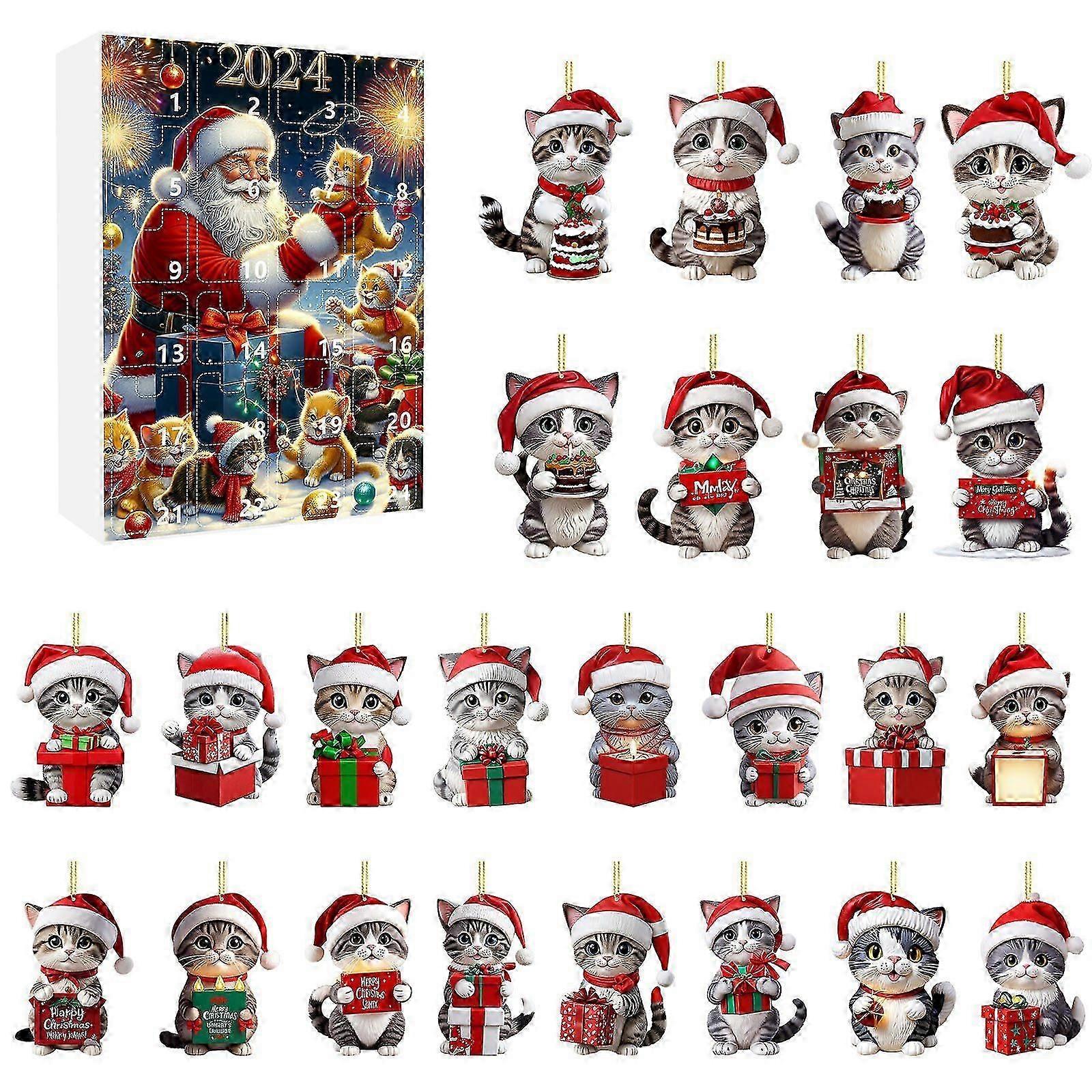 Christmas Countdown Calendar Blind Box Christmas Blind Box Christmas Tree Acrylic Decorated Cat Pendant