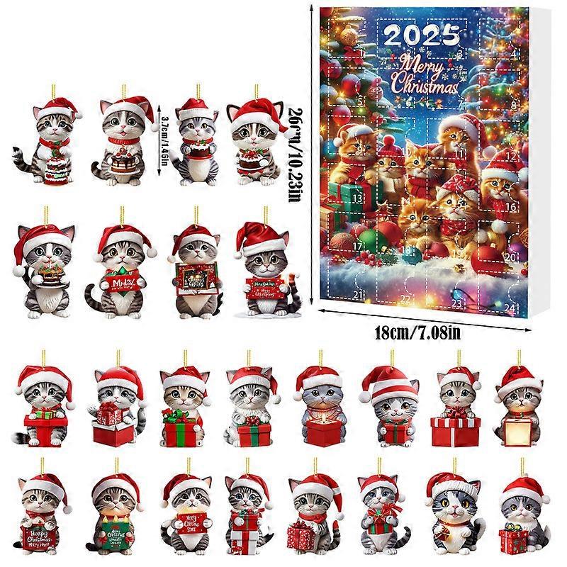 Christmas Countdown Calendar Christmas Blind Box Holiday Atmosphere Christmas Tree Decorative Cat Pendant[G-1828]