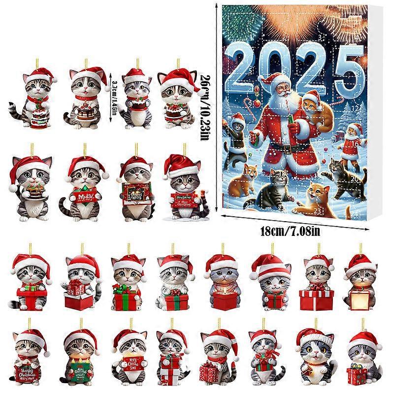 Christmas Countdown Calendar, Christmas Blind Box, Holiday Atmosphere, Christmas Tree, Decorative Cat Pendant [G-1829]