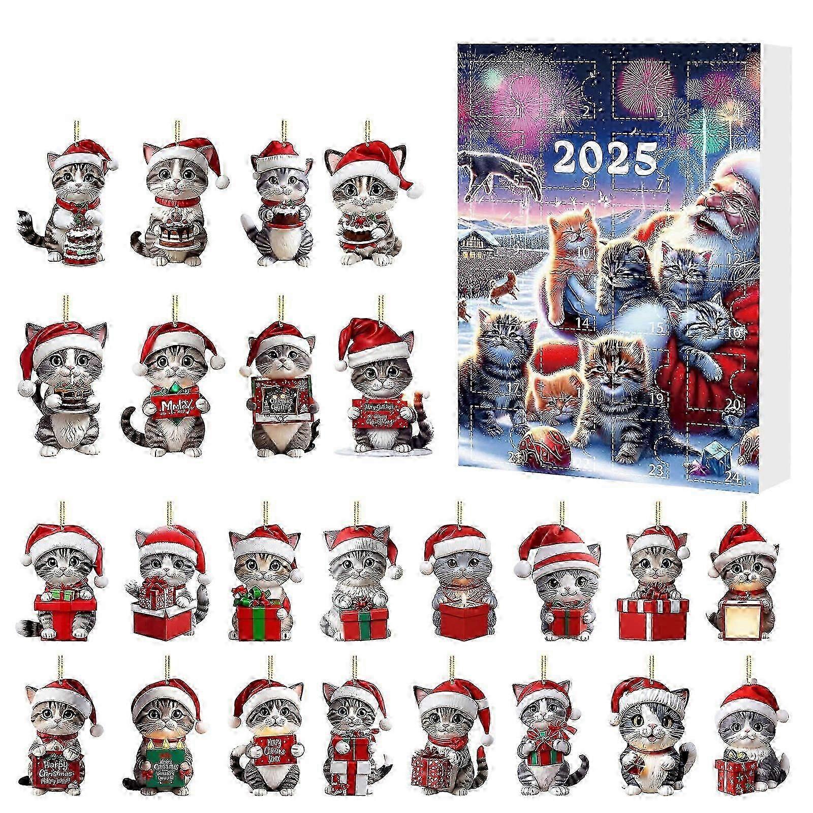 Christmas Countdown Calendar Christmas Blind Box Festive Atmosphere Christmas Tree Acrylic Decoration Cat Pendant