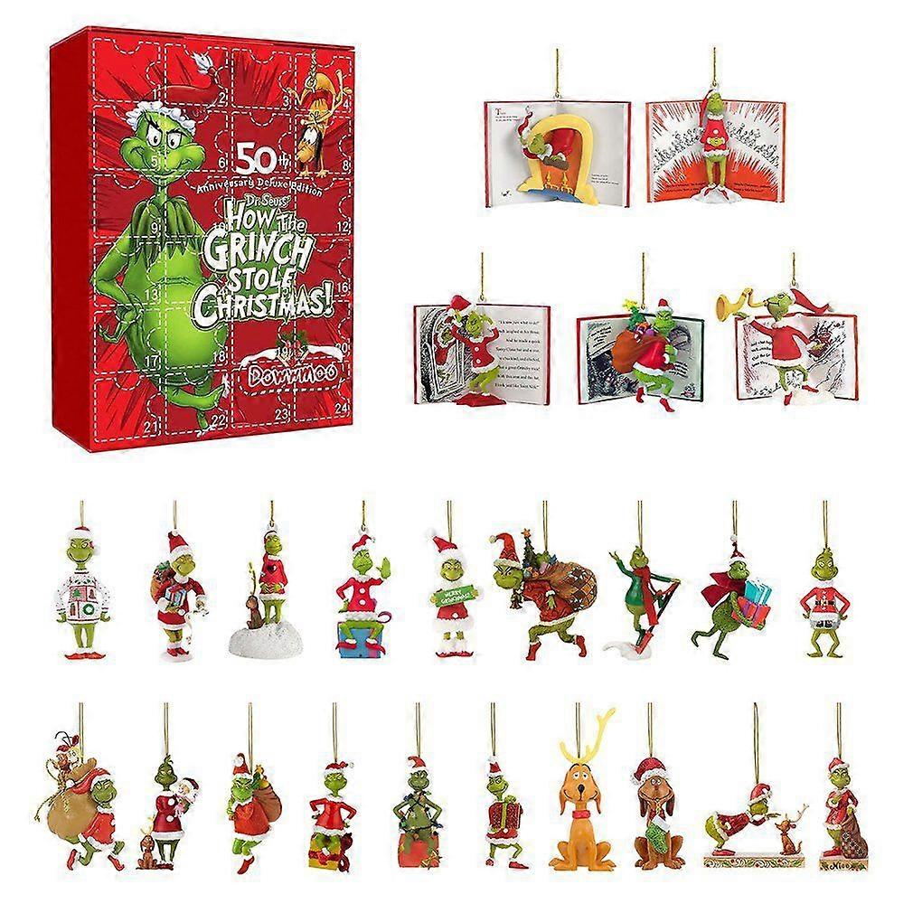 Christmas Grinch Advent Calendar 24-grid resin green monster decorations, a