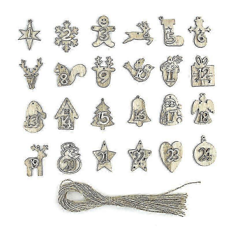 Christmas Advent Calendar Bags 24 Days Embellishments 1-24 Wooden Listing Labels Shytmv