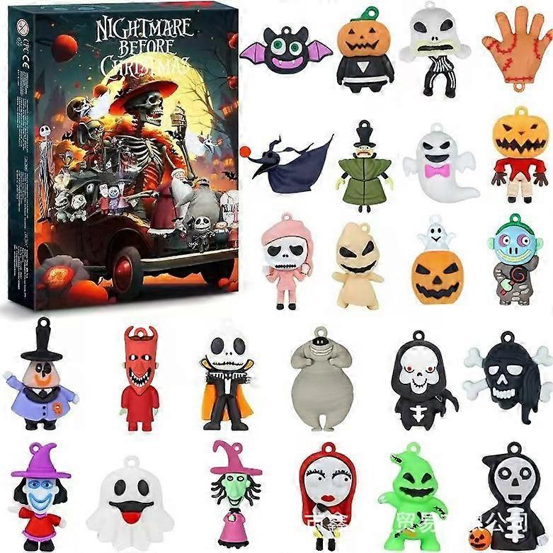 Christmas Advent Calendar Countdown Blind Box Halloween Skeleton Horror Theme 24pcs Surprise Collectible Toy Gift Set