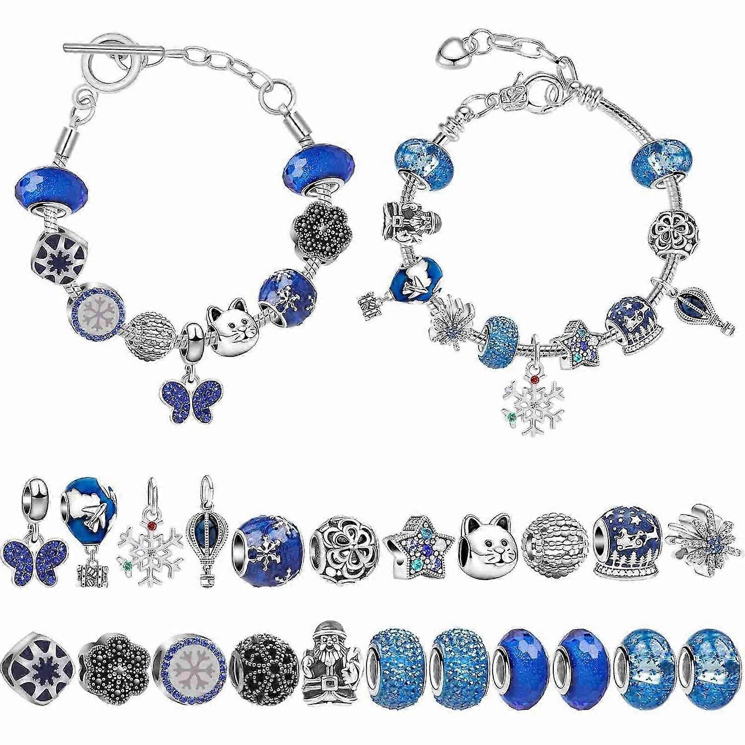 Xmas Advent Calendar Bracelets Xmas Countdown Calendar DIY Jewelry Making Kit with with 22 Charm Beads and 2 Bracelet Chains