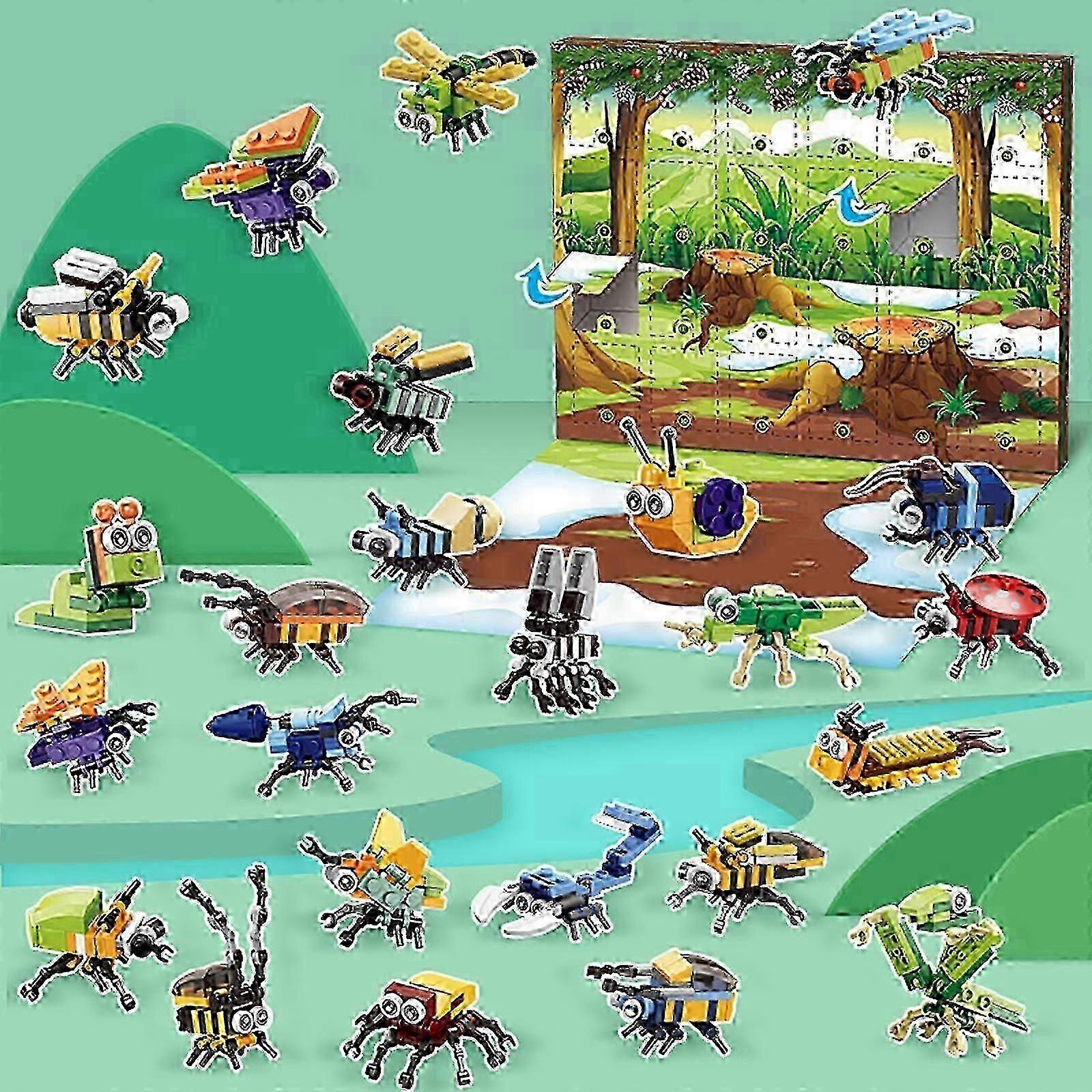 Christmas Advent Calendar Surprise Blind Box Insect Combination Kids Building Blocks
