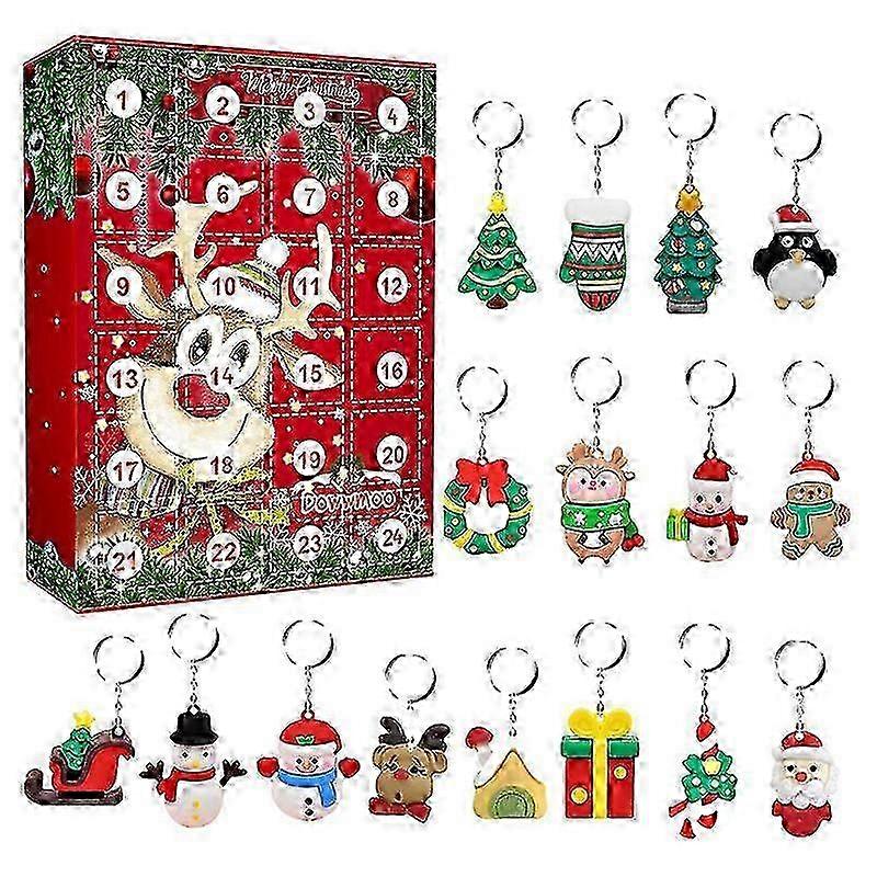 Christmas Advent Calendar Gift Box 24 Pcs Christmas Pendant Keychain For Kids
