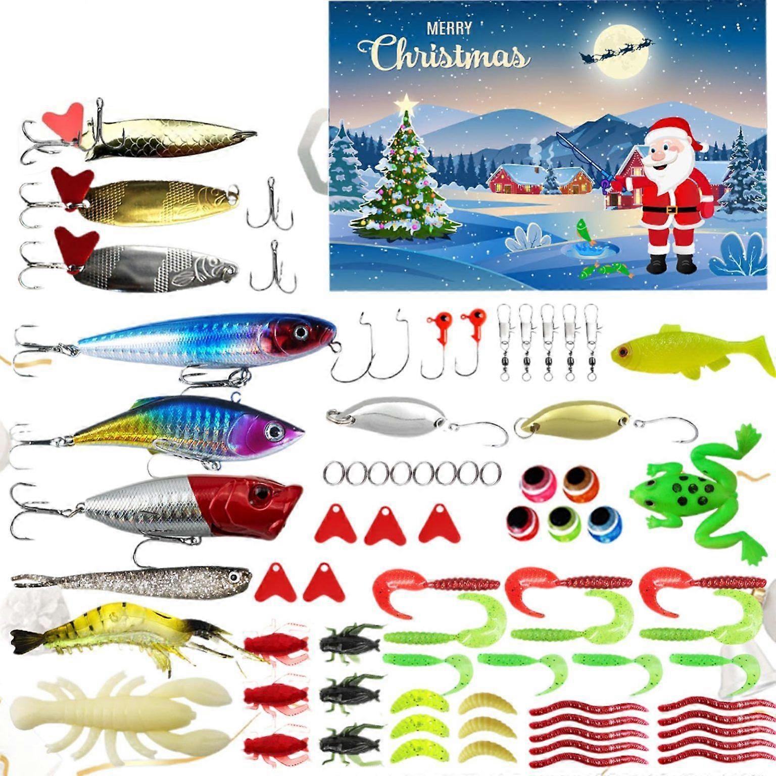 Fishing Advent Calendar - 2024 Edition Celebrate the holiday season with our Fishing Advent Calendar, specially designed for fishing enthusiasts! This unique advent calendar features 24 days of surprises, making each day a festive countdown to Christmas filled with fishing excitement. 78-Piece Fishing Lure Set Our Fishing Advent Calendar includes an impressive collection of 78 fishing lures, featuring a variety of types such as exploding baits, pencil baits, minnow baits, crankbaits, VIBs, frog spoons, and shrimp baits. This diverse selection ensures you are well-equipped for success in any fishing condition. High-Quality Fishing Baits Each lure is crafted with super-sharp hooks designed to withstand tough battles, enhanced with lifelike designs, 3D eyes, and ultra-realistic fish patterns that are sure to attract even the most cautious fish. Versatile for All Fishing Environments Whether you're casting lines in freshwater lakes or testing your skills in saltwater, our lures are versatile and effective. Perfect for targeting trout and bass, this set is suitable for anglers of all skill levels, from beginners to seasoned pros. Perfect Christmas Gift for Anglers Looking for the ideal Christmas gift? This Fishing Advent Calendar makes a thoughtful present for brothers, fathers, husbands, boyfriends, uncles, and sons. Add a touch of fishing adventure to their holiday season with this exciting and unique gift!