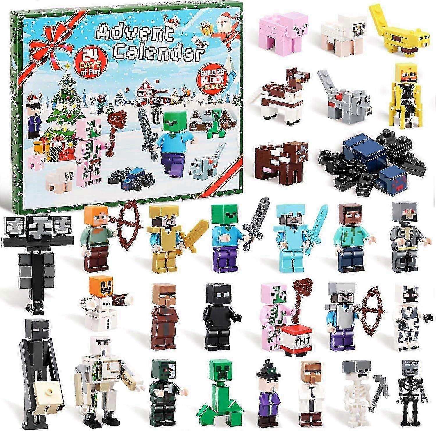 Christmas Advent Calendar 2024 Minecraft, 24 Days Toy Figure Building Blocks Countdown Calendar, Boys Christmas Calendar Surprise Gift-xin.z