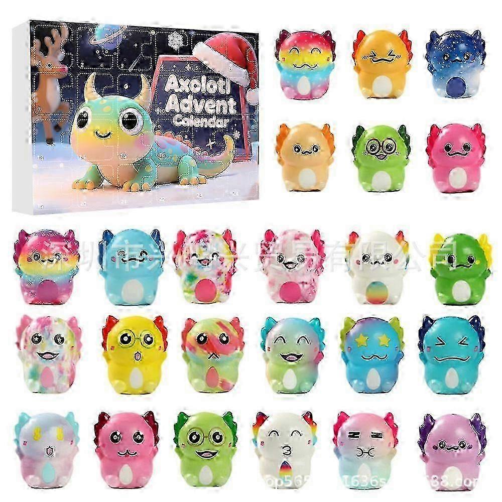 Christmas Advent Calendar 2025, Slow Rising Squishy Axolotl Toys Vacation Countdown Calendar 24 Days for Kids, Girls, Boys 2D Acrylic