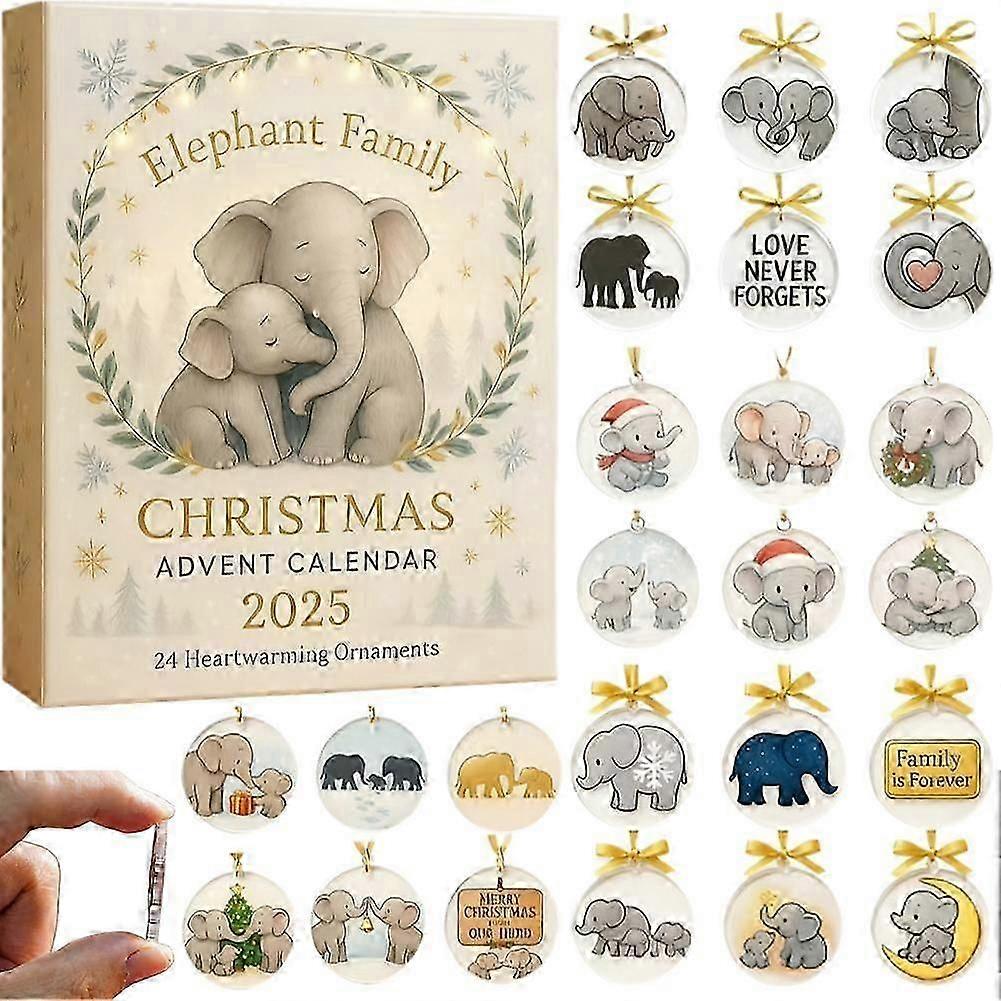Elephant Family Christmas Advent Calendar 2025, Elephant Christmas Ornament