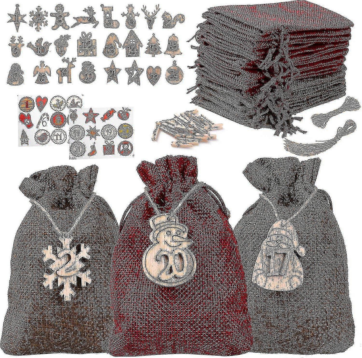 Christmas Advent Calendar, 24pcs Advent Calendar Bags For Filling, Xmas Countdown Cal