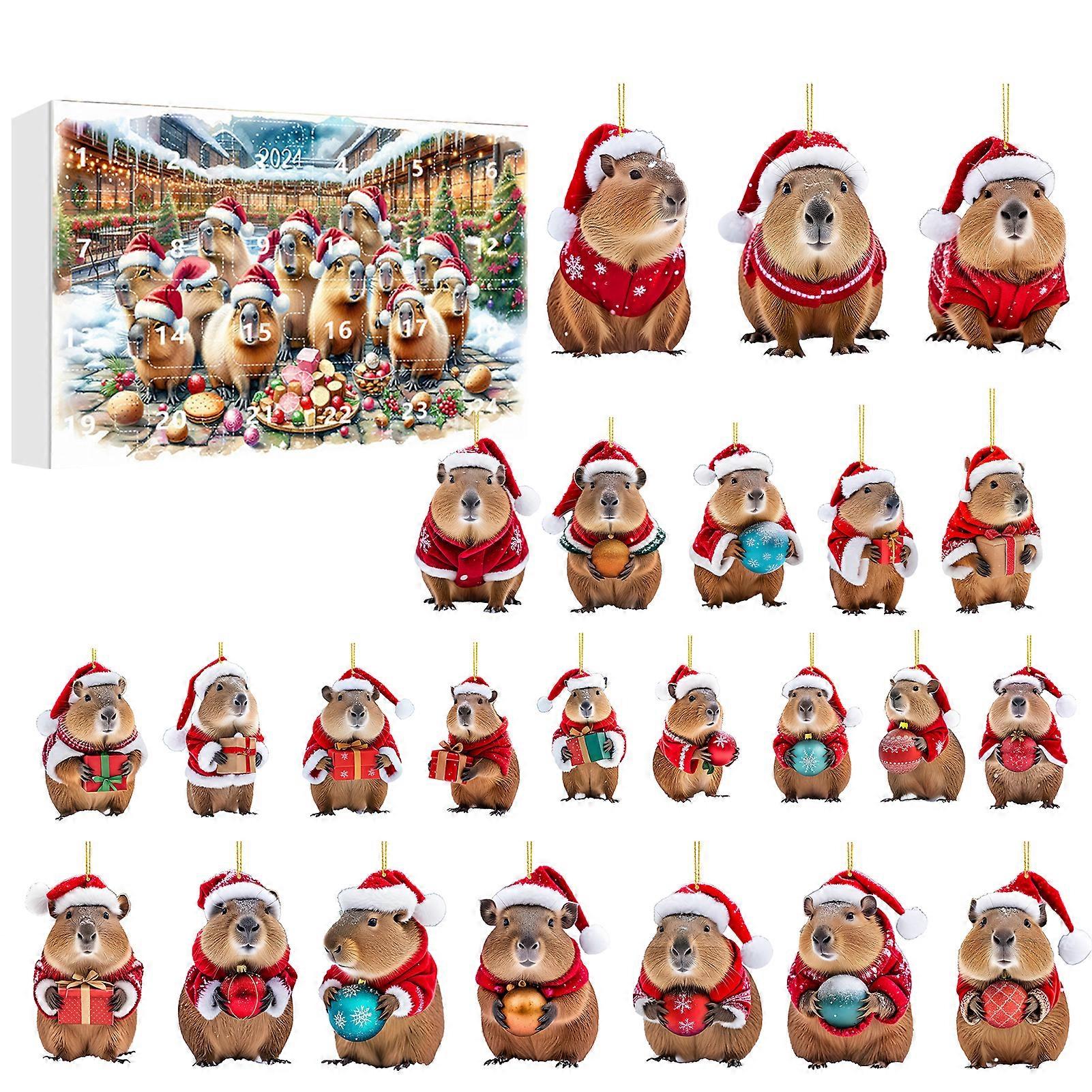 Christmas Advent Calendar Capybara Christmas Countdown Keychain Playset 2D Christmas Fantasy Character Figures Acrylic 24